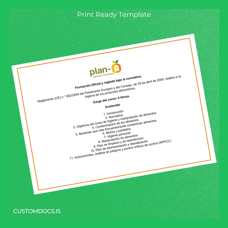 - Designed specifically to meet the standards required for food handler certificates in Spain