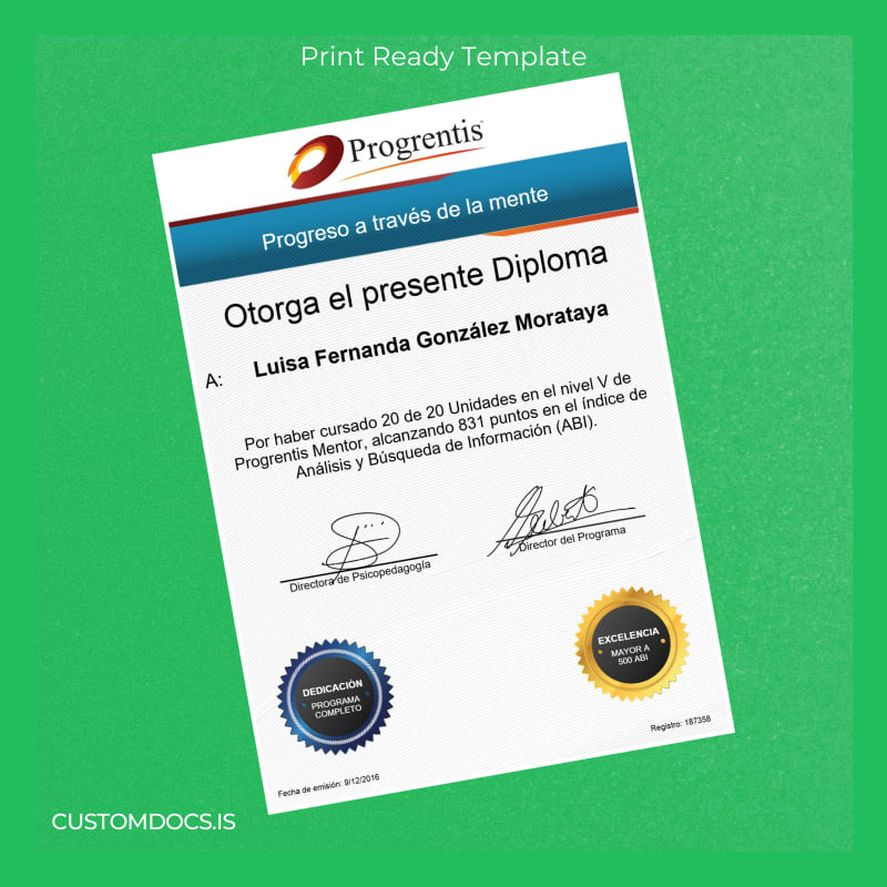 Losing an important diploma can be stressful and may disrupt your professional progress. When time is of the essence, waiting for official replacements can lead to missed opportunities and bureaucratic setbacks. Avoid the delays and uncertainties with the Spain Progreso a través de la mente Diploma Template – Word & PDF, a fully editable and customizable solution designed to meet urgent documentation needs.