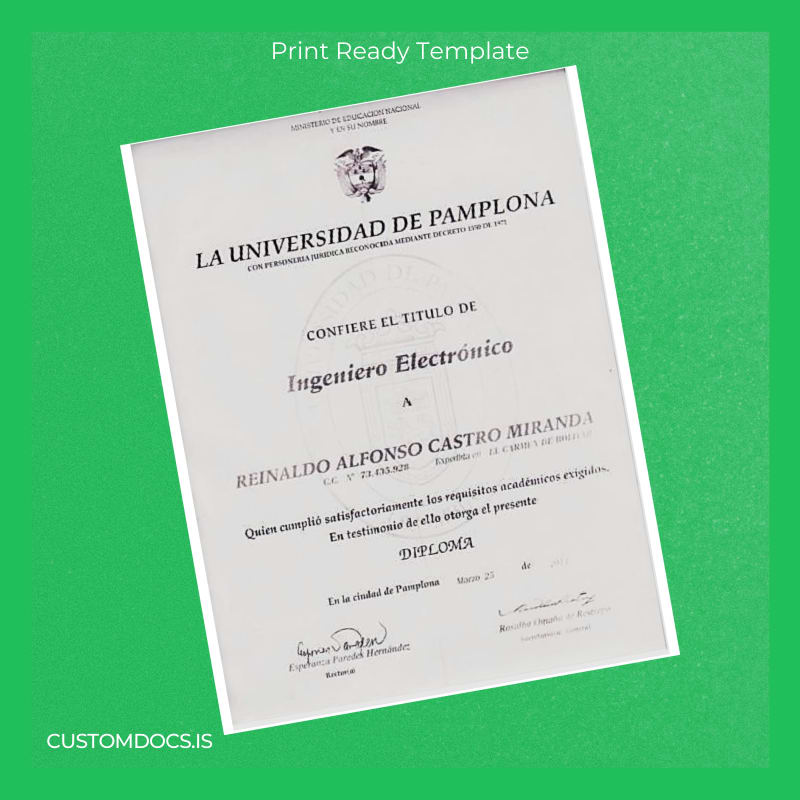 Spain University of Pamplona Engineering Diploma Template – Word & PDF
