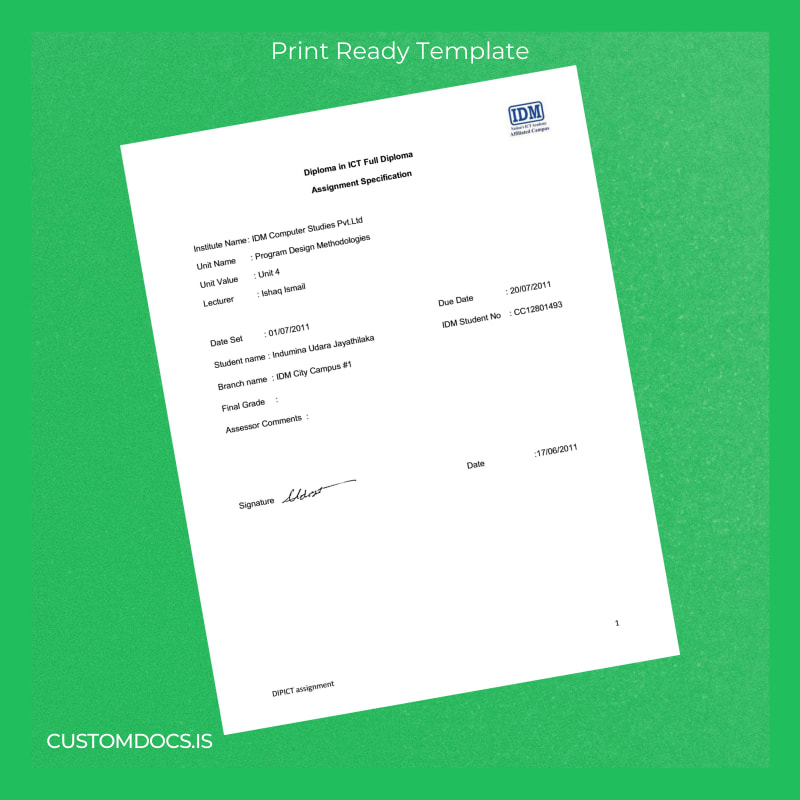 Losing an important academic credential such as your diploma can trigger significant stress and professional setbacks. Whether you need a quick replacement to avoid missing vital deadlines or require a customizable option to reformat missing details, the Sri Lanka IDM Computer Studies Pvt Ltd Diploma in ICT Template – Word & PDF offers your swift answer.