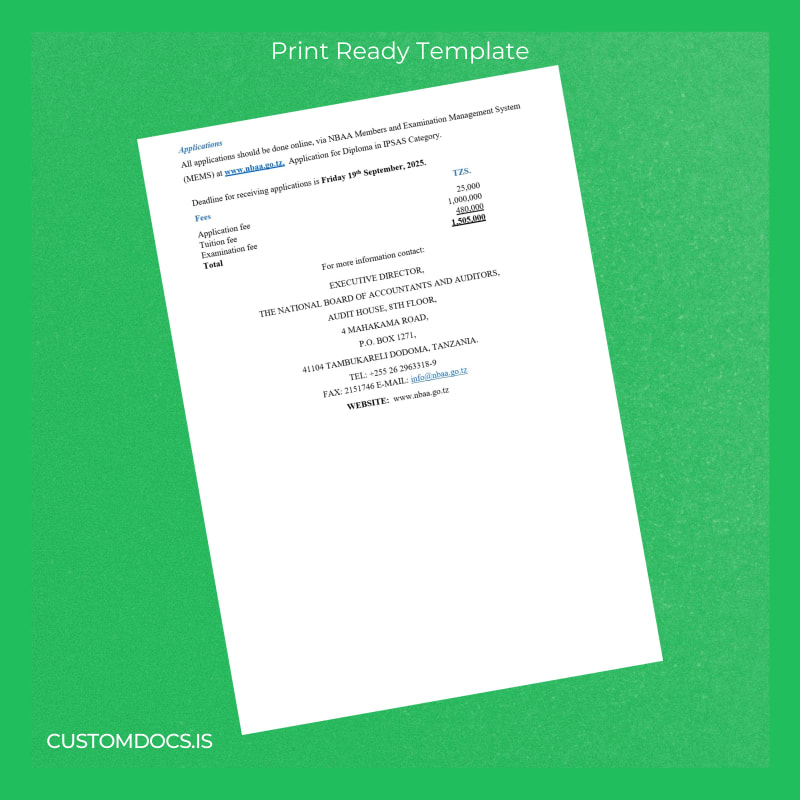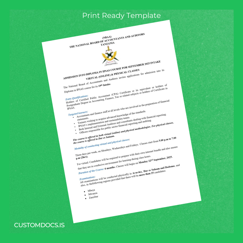 Tanzania National Board of Accountants and Auditors Diploma in IPSAS Template – Word & PDF