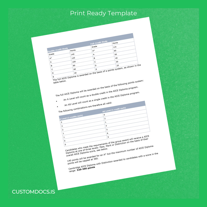 - Includes all necessary fonts and design elements to match official UK Cambridge AICE diplomas, avoiding suspect appearances.