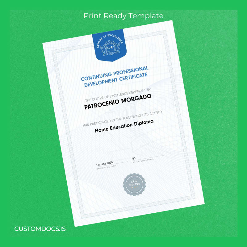 Don’t let this become your reality. Our UK Centre of Excellence Home Education Diploma Template – Word & PDF offers an instant, editable solution that you can customize and print immediately. It’s the perfect replacement diploma template for those who need a professional, high-quality certificate quickly without compromising on appearance or detail.