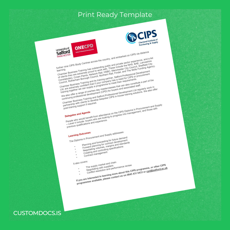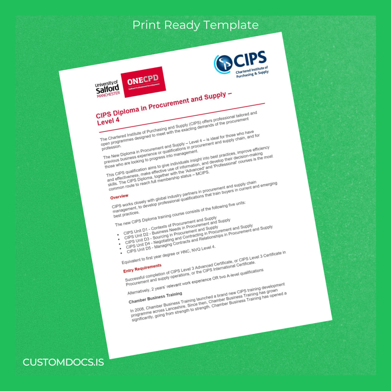 Download UK Chamber Business Training Diploma in Procurement and Supply Level 4 Template – Word & PDF – Instant Digital File 2 Page