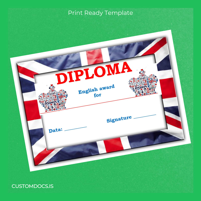 - Blank diploma form structure adapted to UK English standards for authenticity