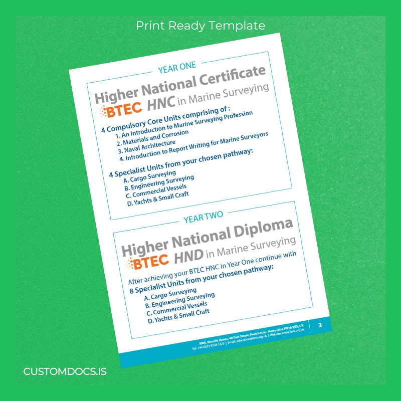 Reliable, Editable UK International Institute of Marine Surveying Higher National Certificate Template – Word & PDF