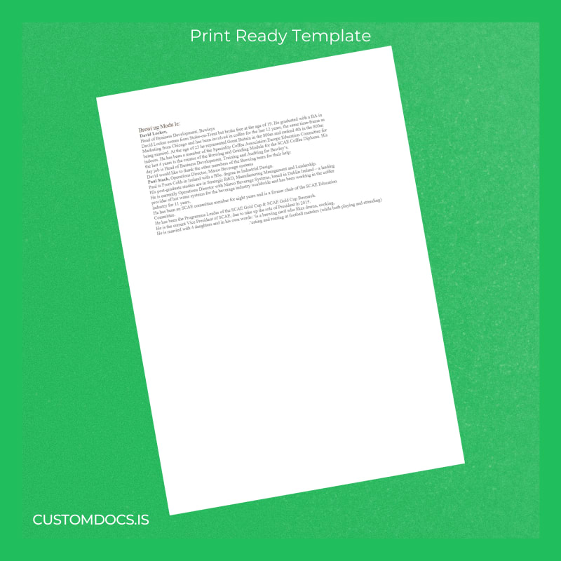 Download UK SCAE Coffee Diploma in Brewing and Grinding Template – Word & PDF – Instant Digital File
