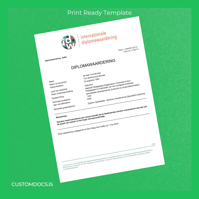 - Designed to match the official Ukraine National Pedagogical Dragomanov University Specialist’s Diploma style to maintain credibility.