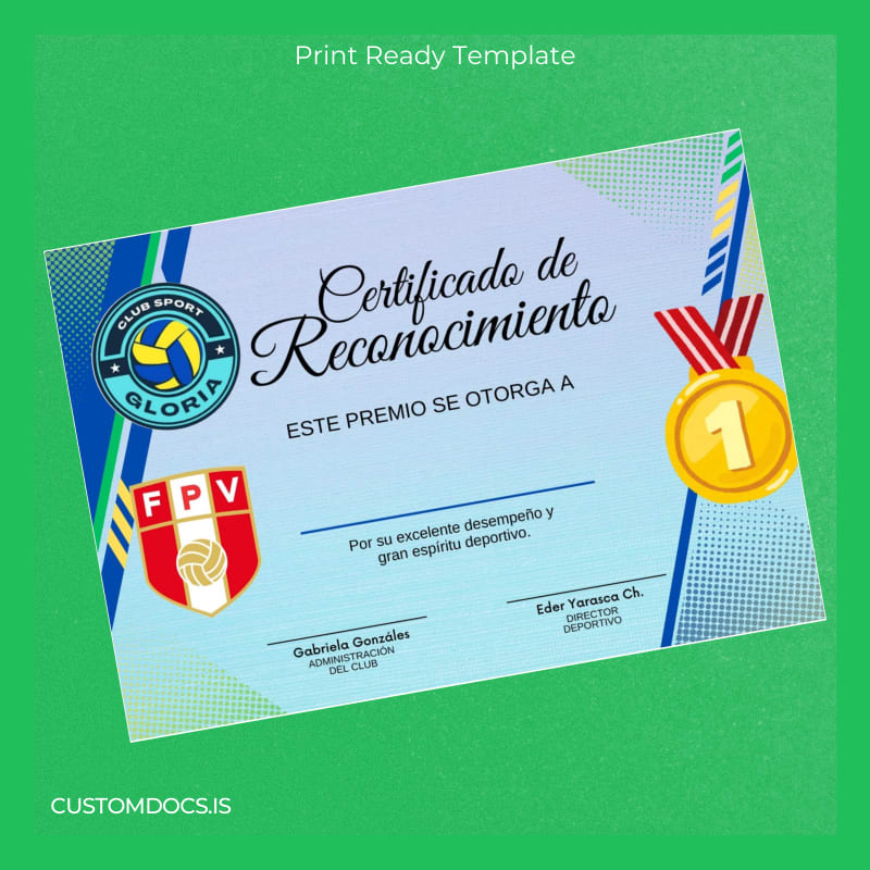 Download USA Club Sport Gloria Recognition Certificate Template – Word & PDF (Instant Access)