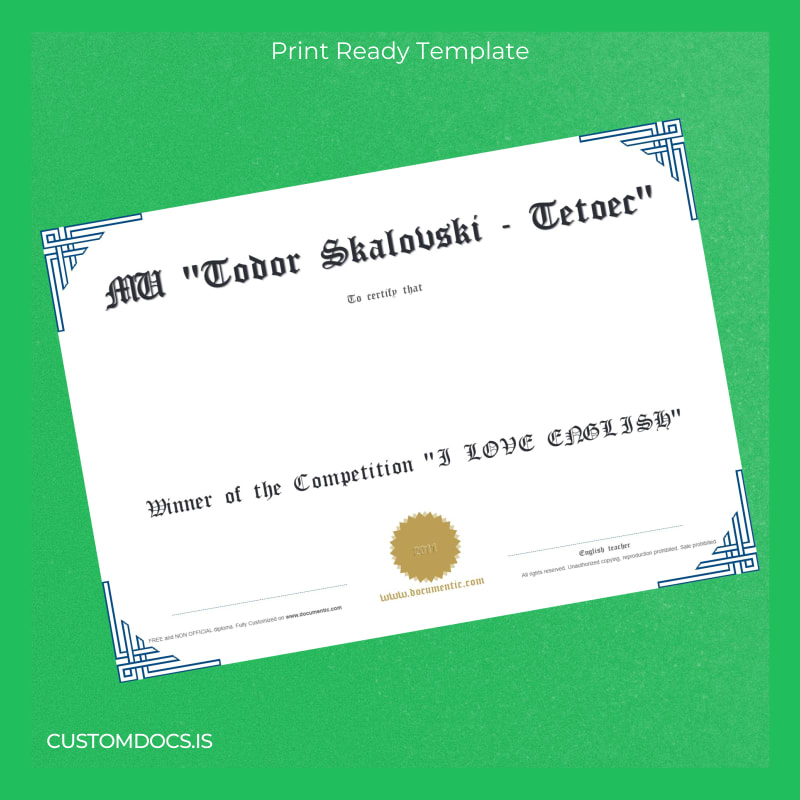 Your Complete Solution: USA Documentic _I LOVE ENGLISH_ Competition Diploma Template – Word & PDF