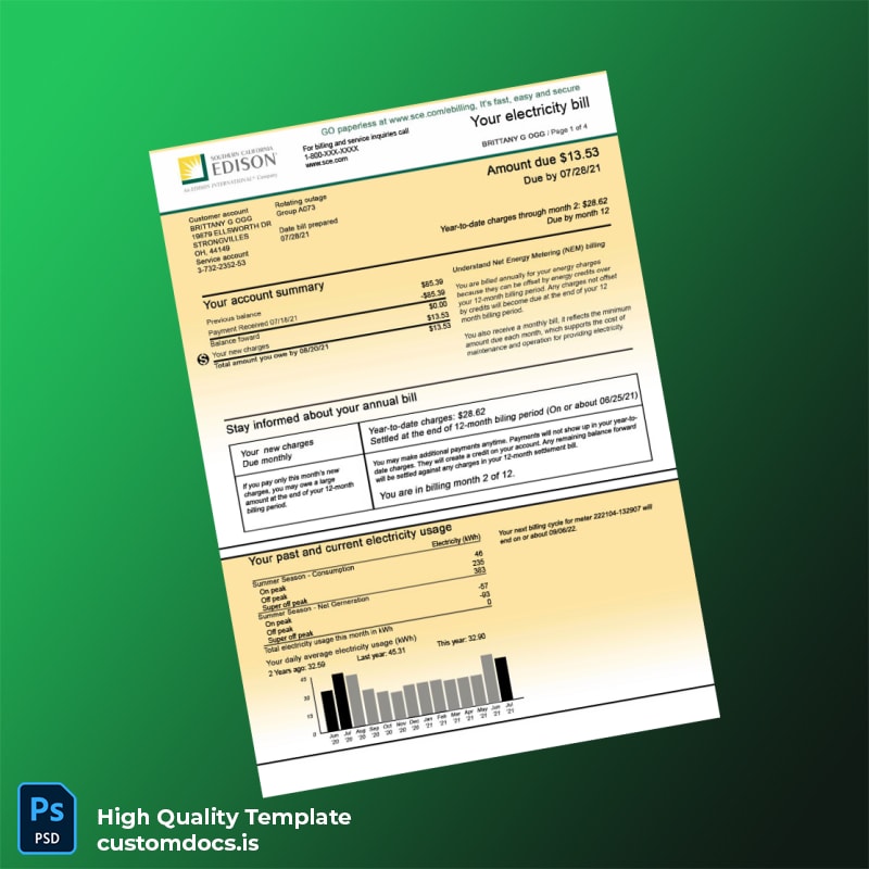 The Edison Editable Electricity Bill Template in Word and PDF formats is a versatile and reliable solution designed for professionals needing a quick, customizable utility bill proof of address template. Whether you require an editable utility bill template pdf or a utility bill template word, this product offers seamless adaptability to suit your document verification needs.