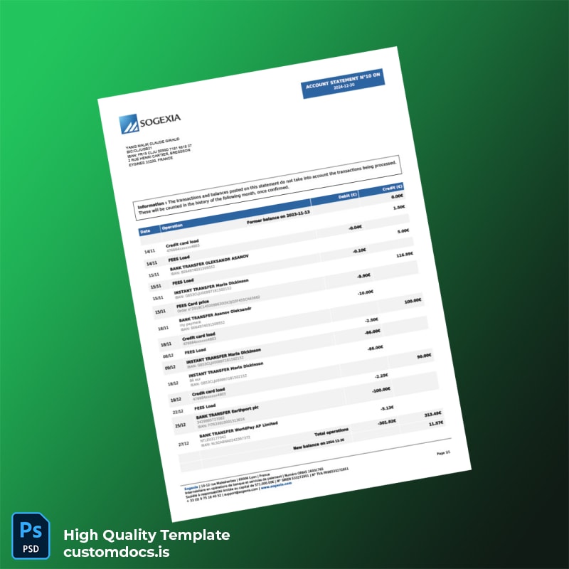 Transform Your Professional Life with the France Bank Statement Template. Whether you’ve lost your original bank statement, need a quick replacement after theft, or require a statement for an urgent application, our customizable template is designed to meet your needs with ease and professionalism.