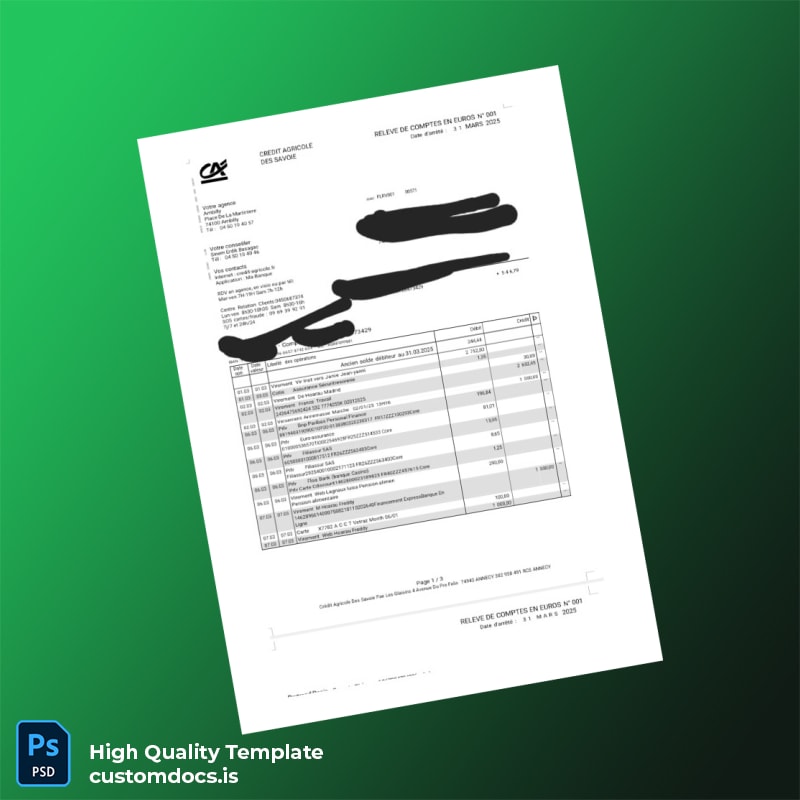 Don’t let your documentation needs hold you back. Take action today and download the France Crédit Agricole Bank Statement Template to streamline your process. With our user-friendly approach and professional-quality output, achieving your documentation goals has never been easier!