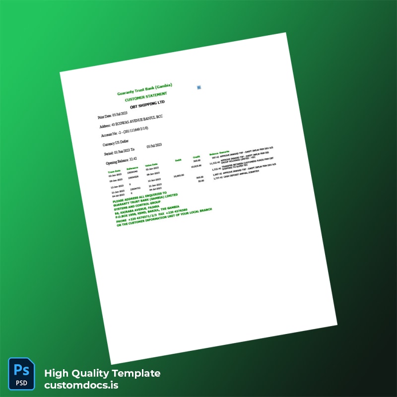 Gambia Guaranty Trust Bank Statement Template: Your Reliable Financial Solution