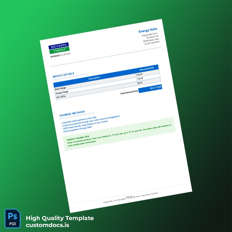 The Germany Energy Italia S P A Editable Electricity Bill Template in Word and PDF formats offers a professional and highly customizable solution for generating credible utility bills quickly. Designed for individuals and professionals who require a reliable utility bill proof of address template, this product facilitates easy editing while ensuring a polished, authentic appearance.