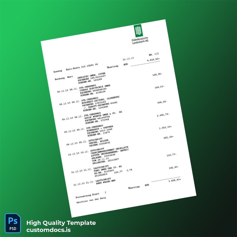 Germany Oldenburgische Landesbank Kontoauszug Template in Word and PDF Formats