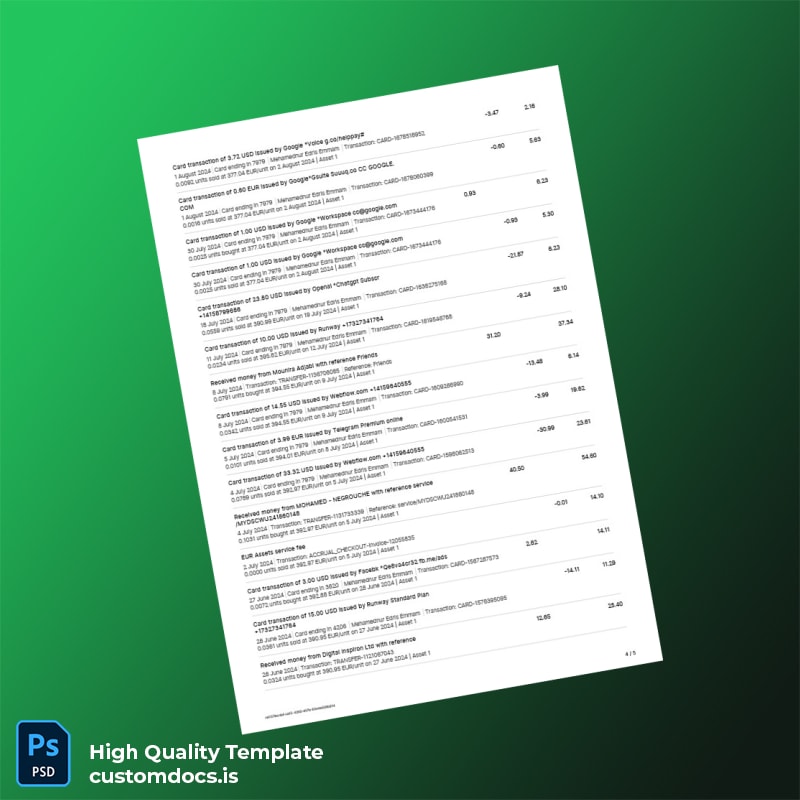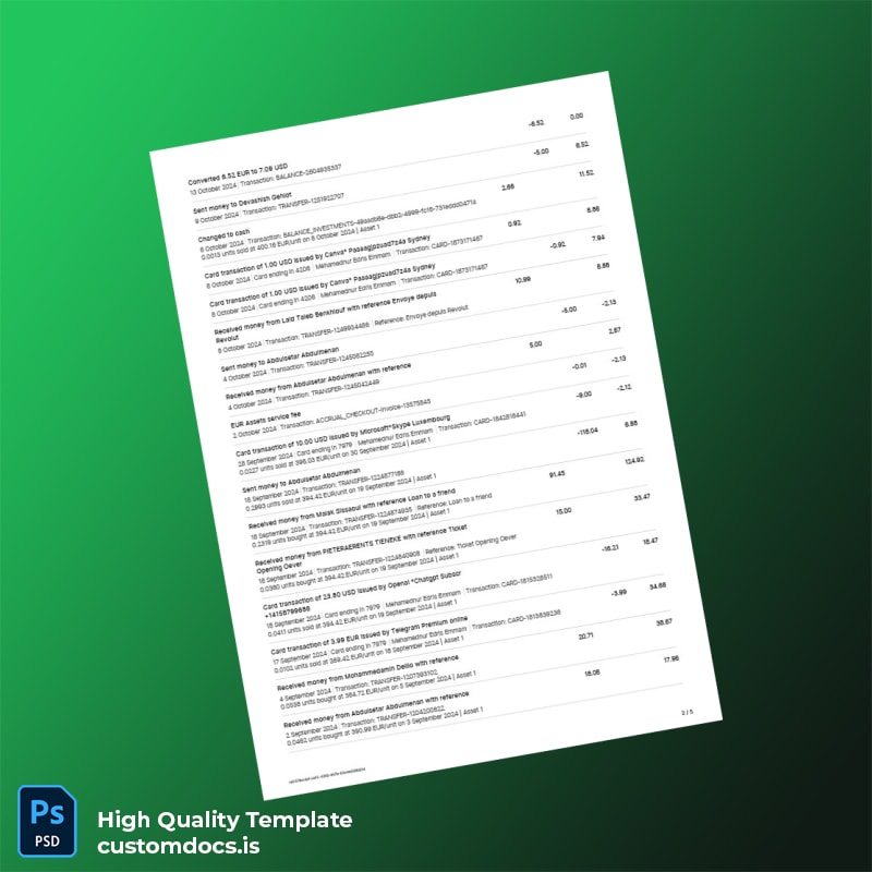 Imagine being a freelancer who has just completed a critical contract but needs to submit an official-looking bank statement to confirm your financial status. The clock is ticking, and you need a reliable solution. By using our editable bank statement template, you can easily customize every important detail, from your name to transaction dates, ensuring your document looks authentic and polished.