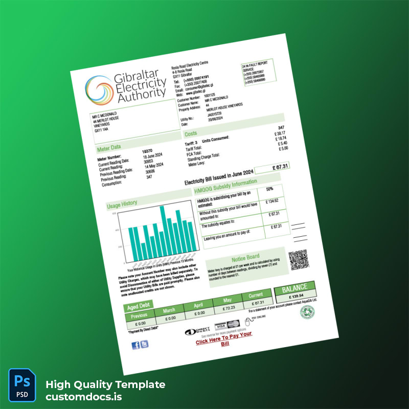 The HMGoG Water Authority Editable Sales Bill Template offers a professional, user-friendly solution for creating authentic utility bills in Word and PDF formats. Designed for seamless customization, this template caters to those needing a reliable and editable utility bill proof of address template that fits a variety of official and personal needs.