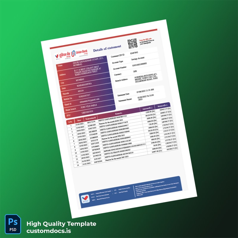Don’t let missing documents stand in your way! Enhance your productivity and confidence with our India Andhra Bank Statement Template. Whether you need a 3 months bank statement PDF or a 6 months bank statement PDF, we have your needs covered. Discover more related products, such as our bank statement template Word and blank bank statement template PDF, to find the perfect fit for your requirements. For more insights, check out bank statement templates.
