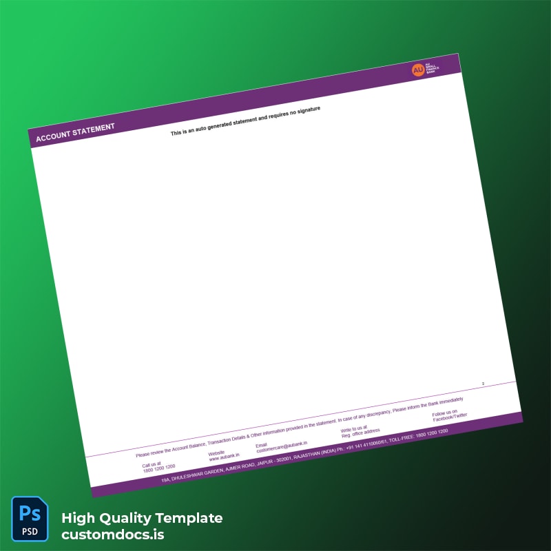 Be the first to review “India AU Bank Statement Template in Word and PDF formats 2 page”