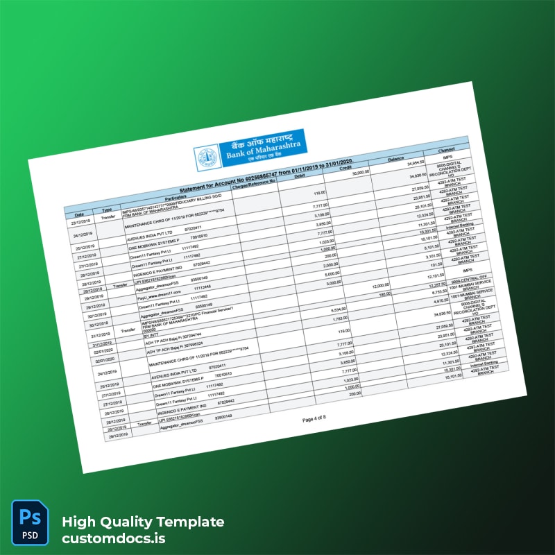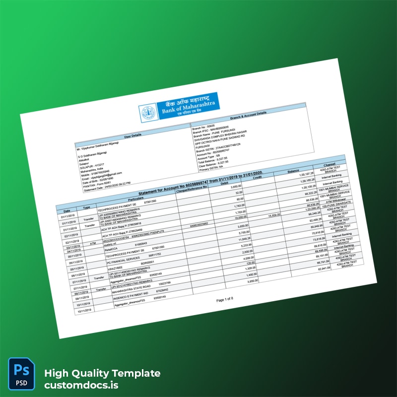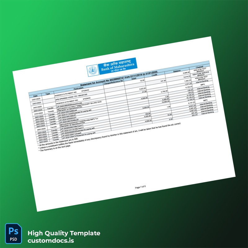 Transform Your Documentation Effortlessly with the India Bank of Maharashtra Account Statement Template
