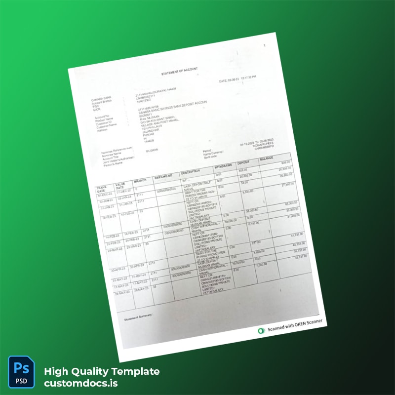 Don’t settle for generic templates that may not meet your specifications. Get creative control and professional results with our India Canara Bank Statement Template. Available now in editable bank statement template Word and PDF formats, it’s time to take the next step in your document management.