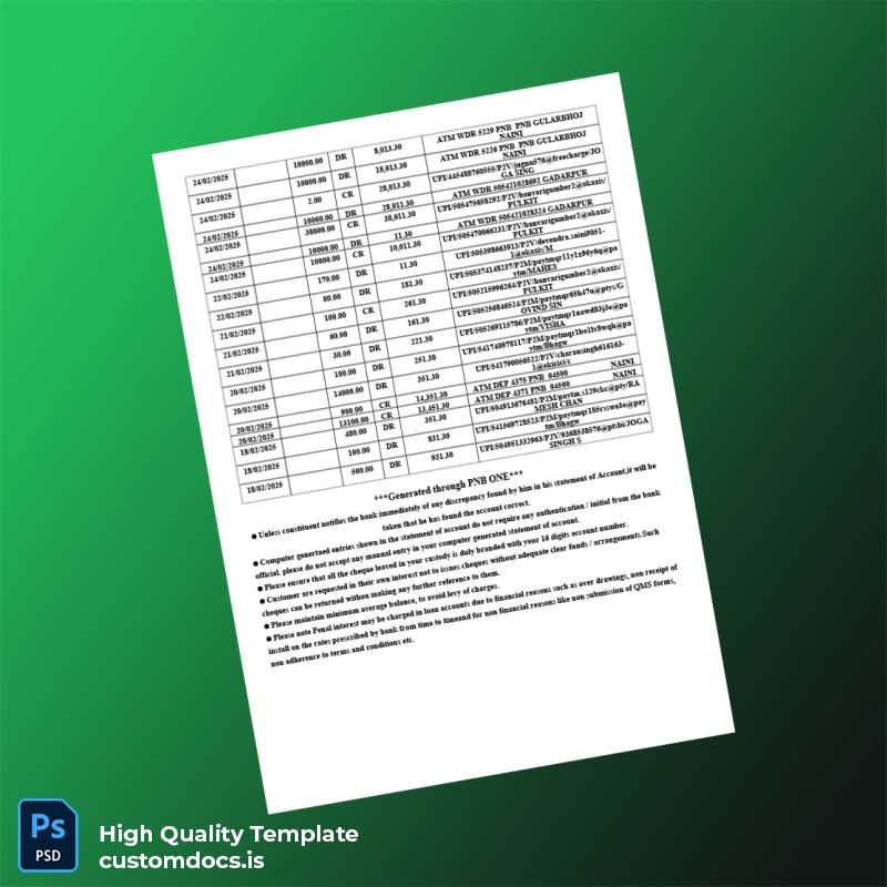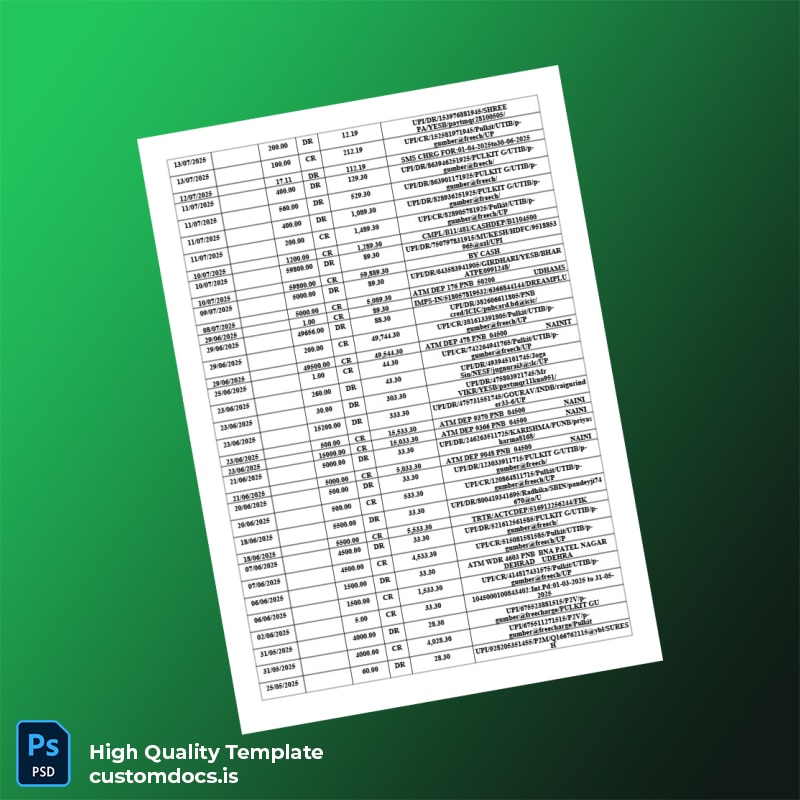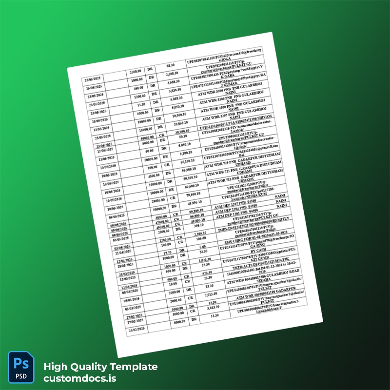 Are you struggling to produce a bank statement for a financial application or personal use? The India GULAB Bank Statement Template in Word and PDF formats is designed to solve your problem effortlessly. With our template, create official-looking documents that meet your needs with ease.