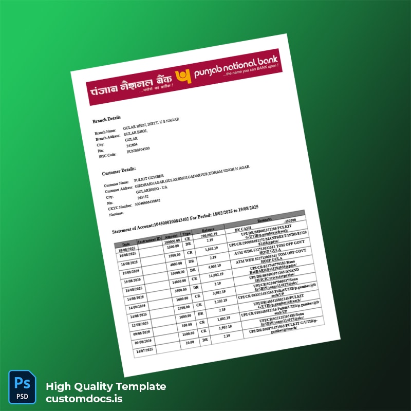 Elevate Your Financial Documentation with the India GULAB Bank Statement Template