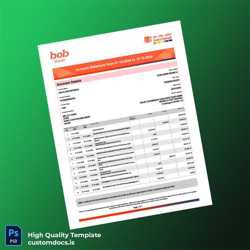 Introducing the India JCB Bank Statement Template in Word and PDF formats, designed specifically for professionals who need accurate, editable bank statements without the hassle. This template is perfect for individuals who may have lost their documents or require quick replacements after expiry.