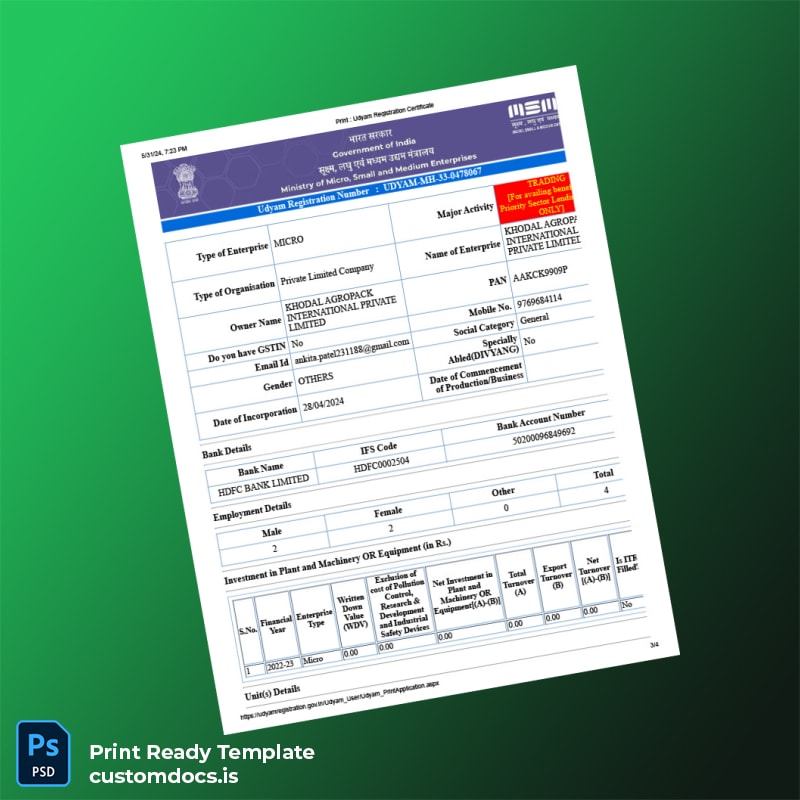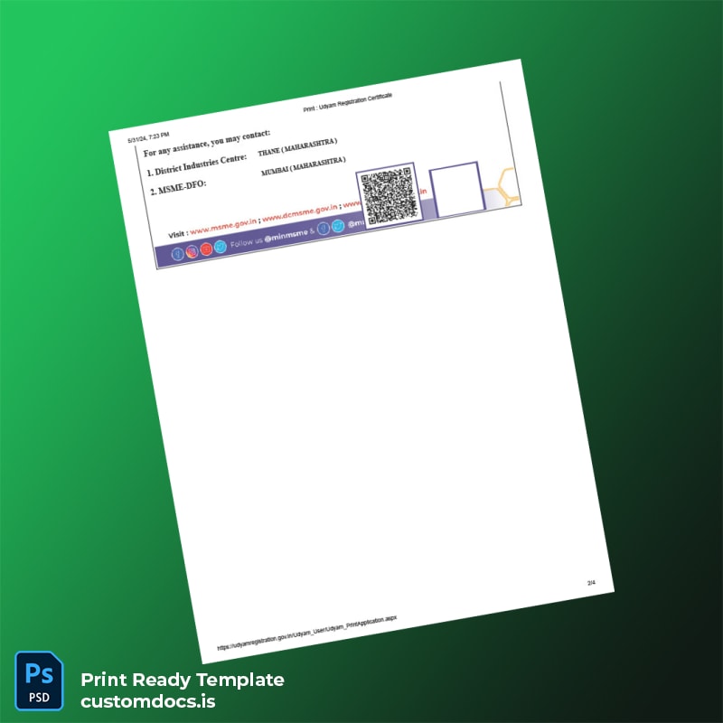 India Ministry of Micro Small and Medium Enterprises MSME Registration Certificate Template – Word & PDF