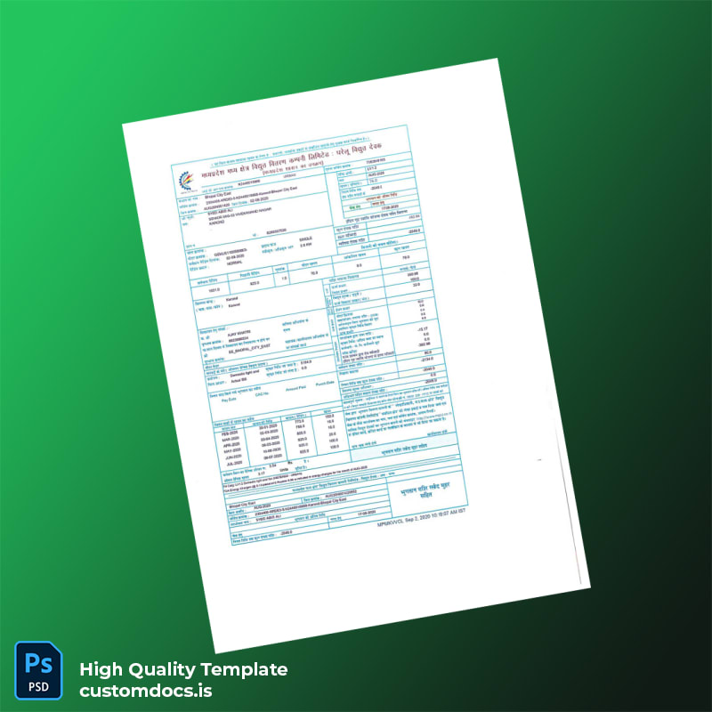 India MPMKVCL Editable Utility Bill Template in Word and PDF Formats