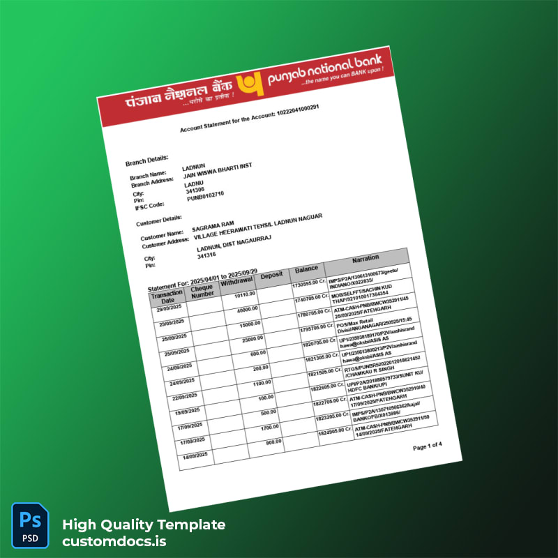 Streamline Your Financial Documentation with Our India Punjab National Bank Statement Template