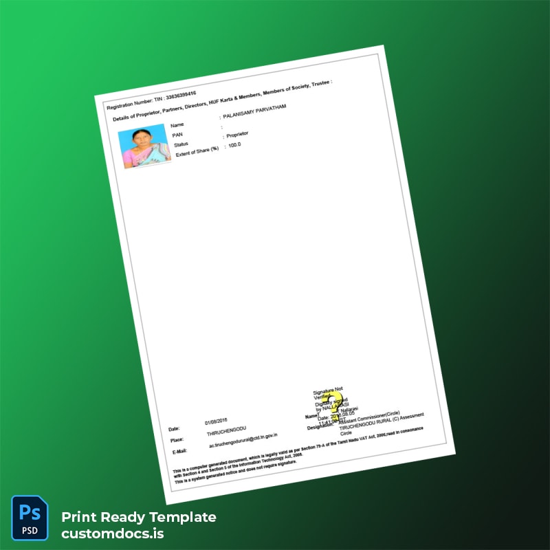 Streamline Your Business Registration with the India Tamil Nadu Commercial Registration Certificate Template