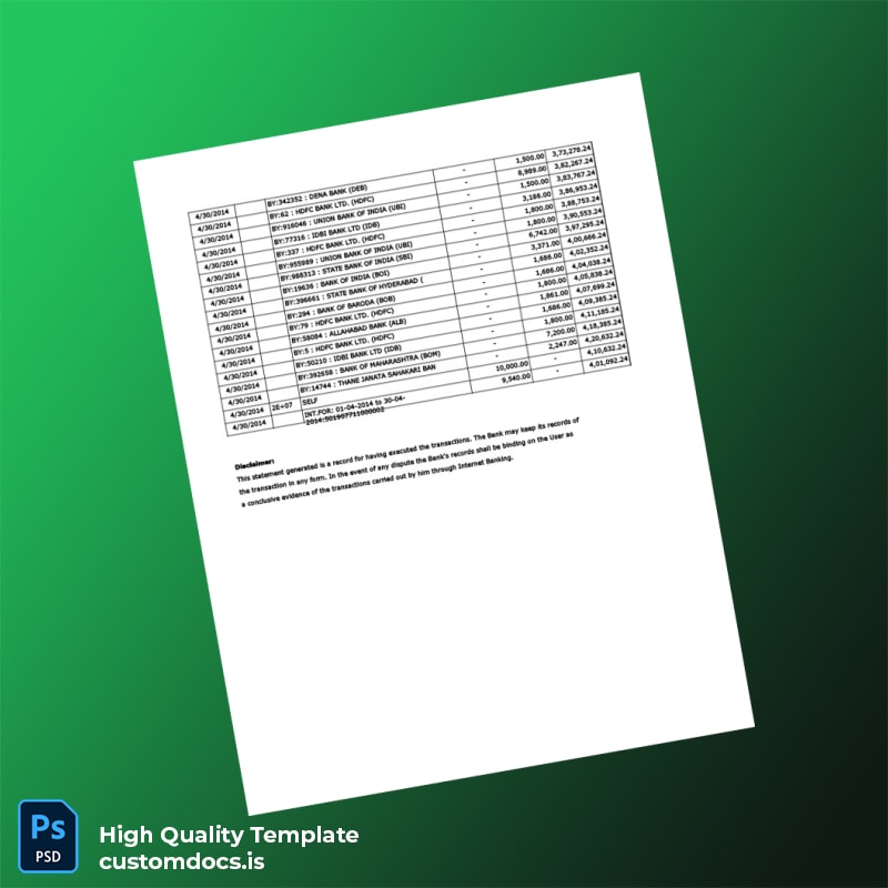 Don’t let a missing bank statement hold you back. Our India Vijaya Bank Statement Template is your go-to solution for creating professional documents efficiently. Whether for personal, banking, or business needs, this template ensures you have the right tools at your fingertips. Grab yours today and step confidently into your financial future! For more options, consider checking related templates like the editable bank statement template.