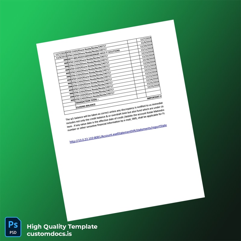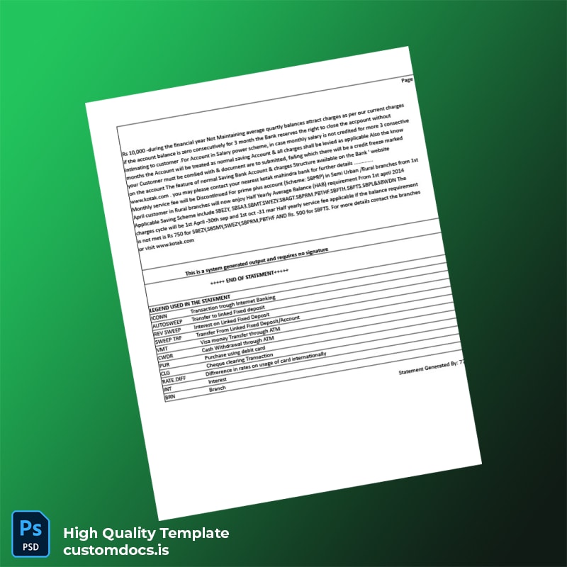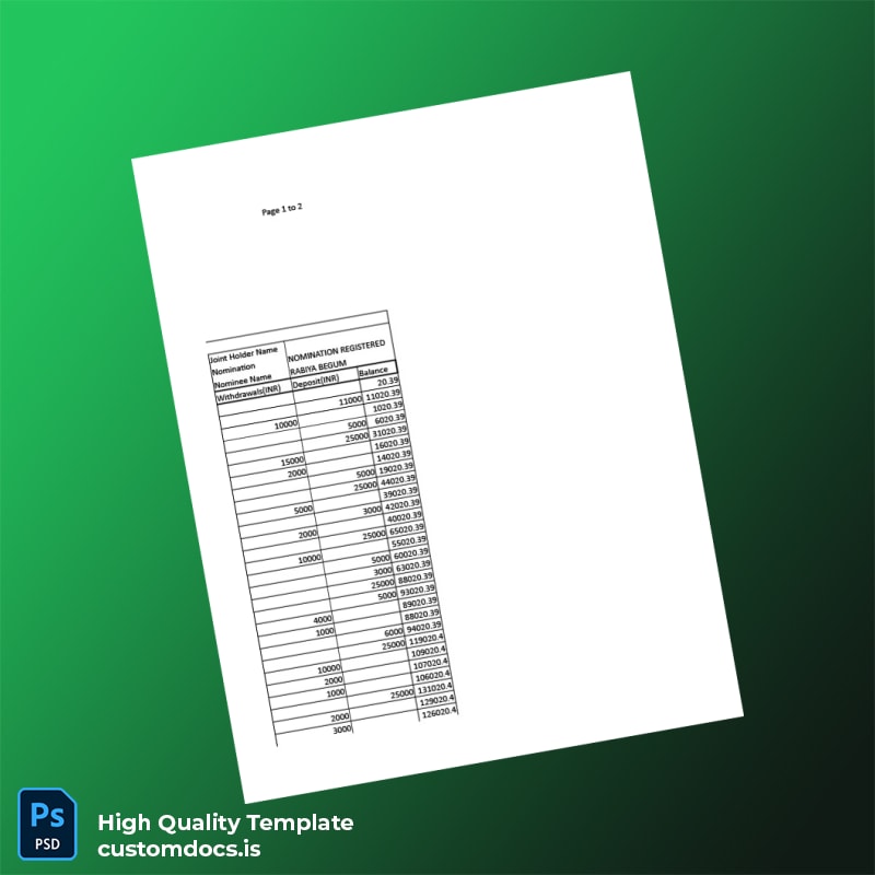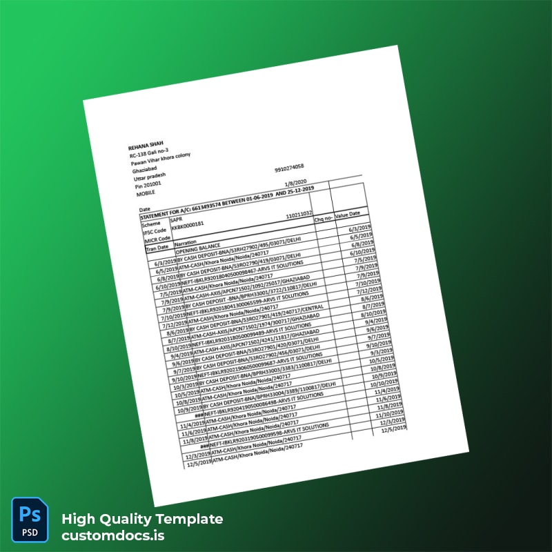 The India Visa Inc Bank Statement Template in Word and PDF formats is designed to meet the exacting standards of creative and technical professionals who require a reliable and editable bank statement for visa applications and other financial needs.