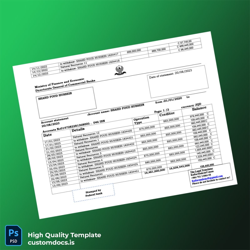 Are you in urgent need of a verified bank statement for visa applications, loan approvals, or personal records? Look no further than our Iraq Bank Statement Template, available in both Word and PDF formats. This editable bank statement template allows you to create a professional-looking document in no time, simplifying your experience and ensuring accuracy.