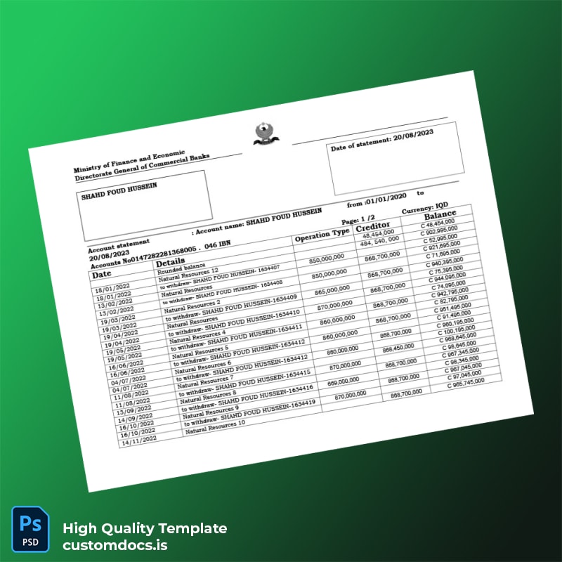 Take control of your documentation needs with the Iraq Bank Statement Template. You deserve a quick and efficient solution—don’t wait, download your template now and make your financial statements work for you!
