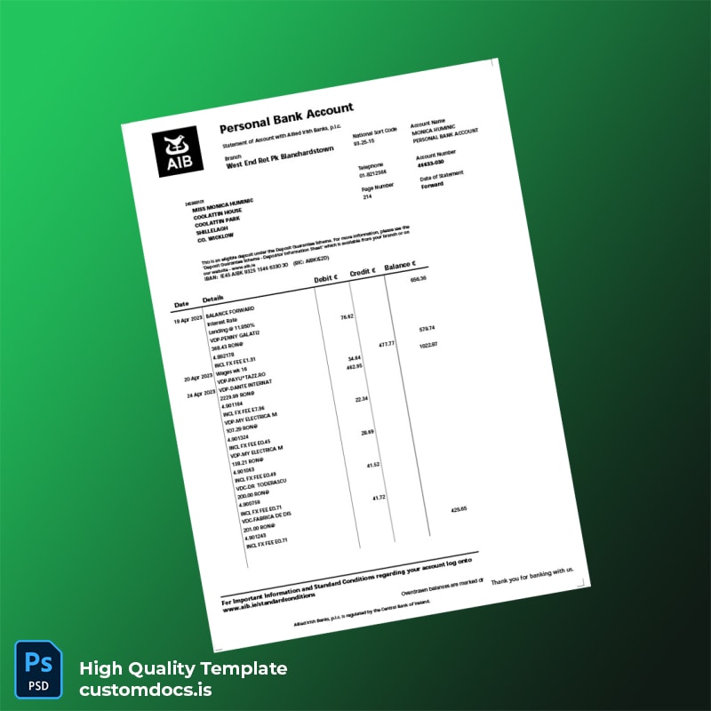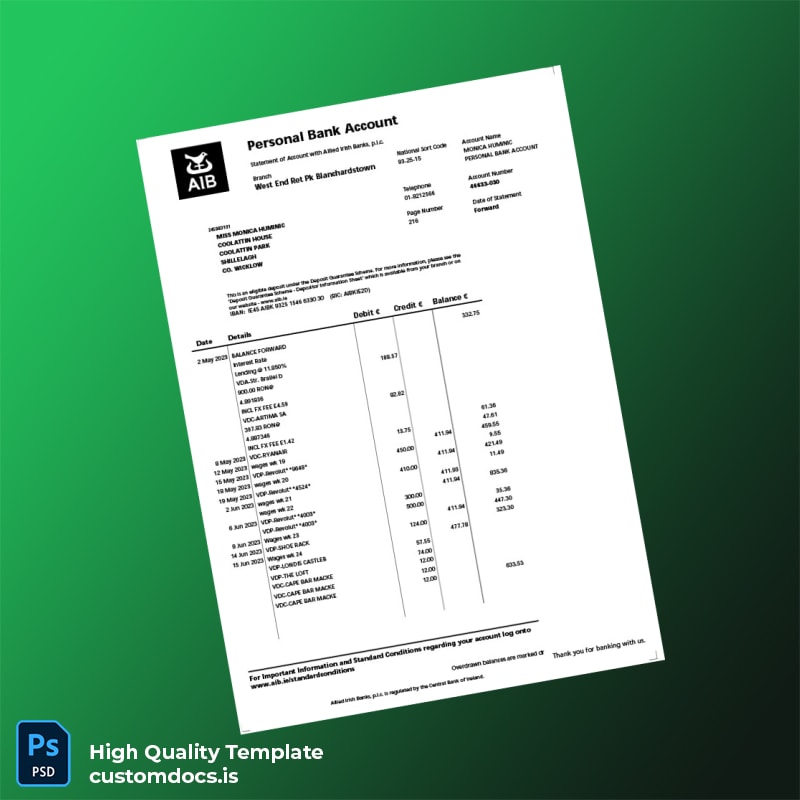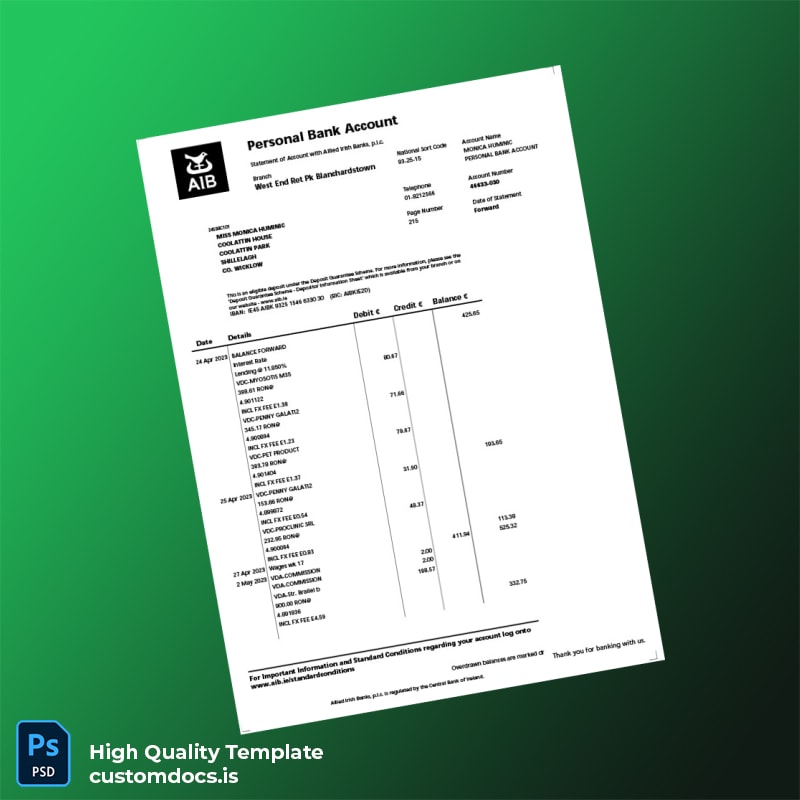 Our Ireland Allied Irish Banks Bank Statement Template offers several key features tailored to meet your professional needs: