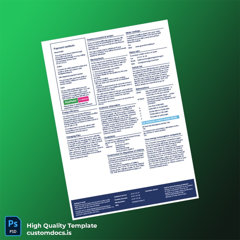Download the Ireland Bord G Is Energy Limited Editable Utility Bill Template in Word and PDF formats for quick, professional bill management.