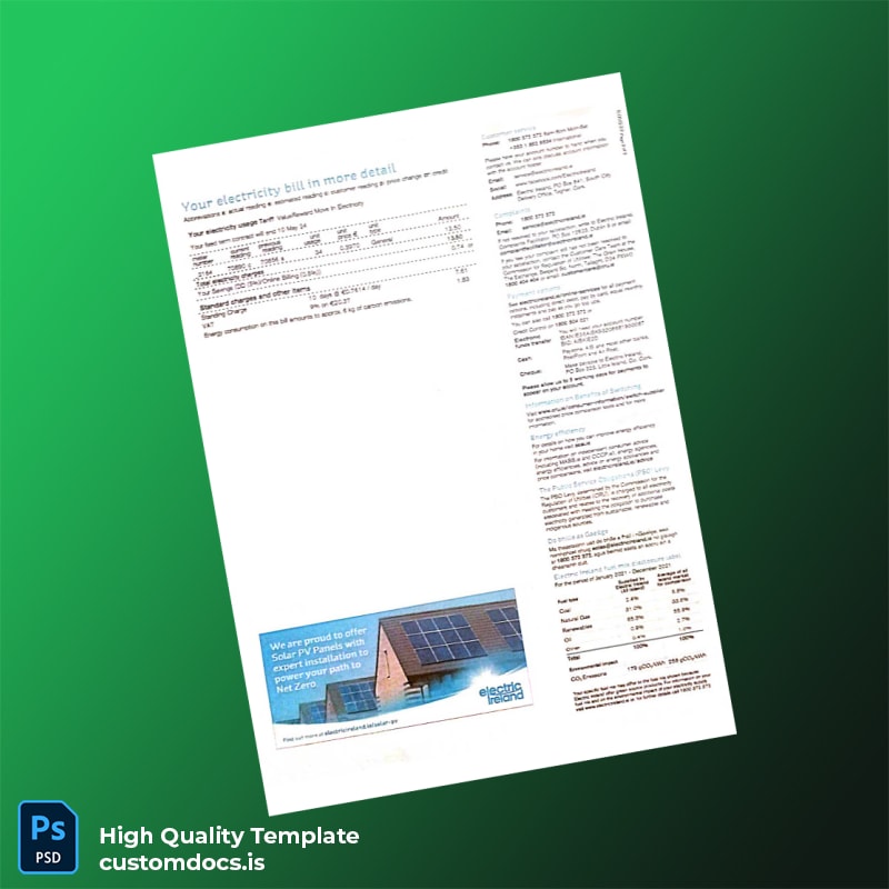 Ireland Electric Ireland Editable Electricity Bill Template Overview
