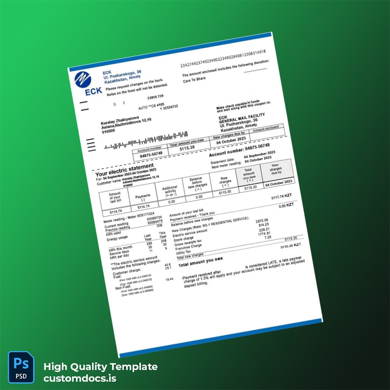 Kazakhstan ECK Editable Electricity Bill Template: Reliable Utility Bill Proof of Address Solution