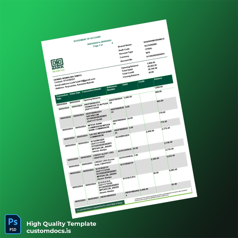 Our Kenya Bank Statement Template is packed with features designed to enhance your document’s credibility: