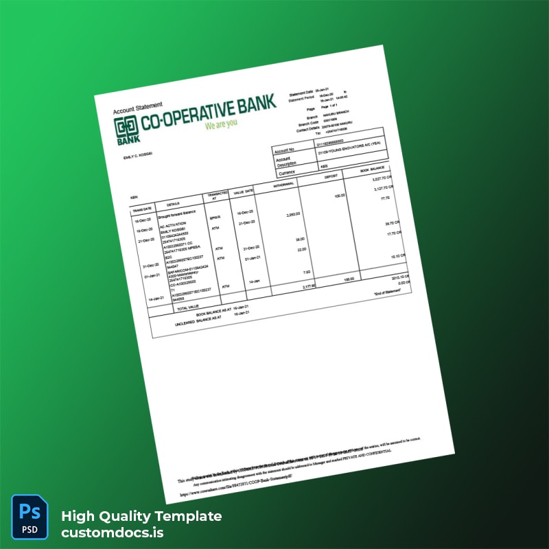 Kenya COOP Bank Statement Template