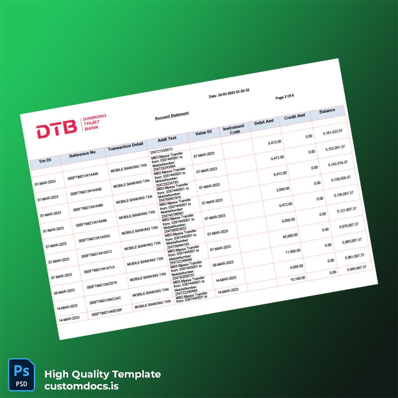 Picture this: you’re applying for a loan, but your bank statement went missing just when you needed it most. The urgency escalates until you discover the Kenya DTB Bank Statement Template. This editable bank statement template for Word and PDF formats allows you to regain control, enabling immediate document preparation without any complex processes. Explore more options in our bank statement template category.