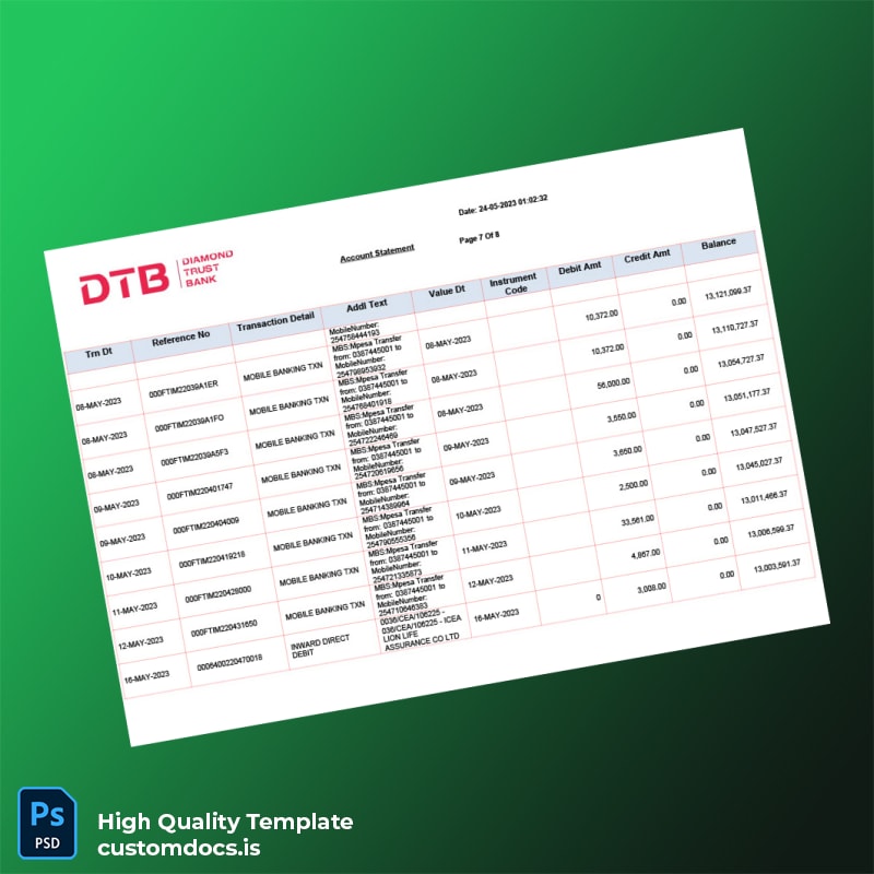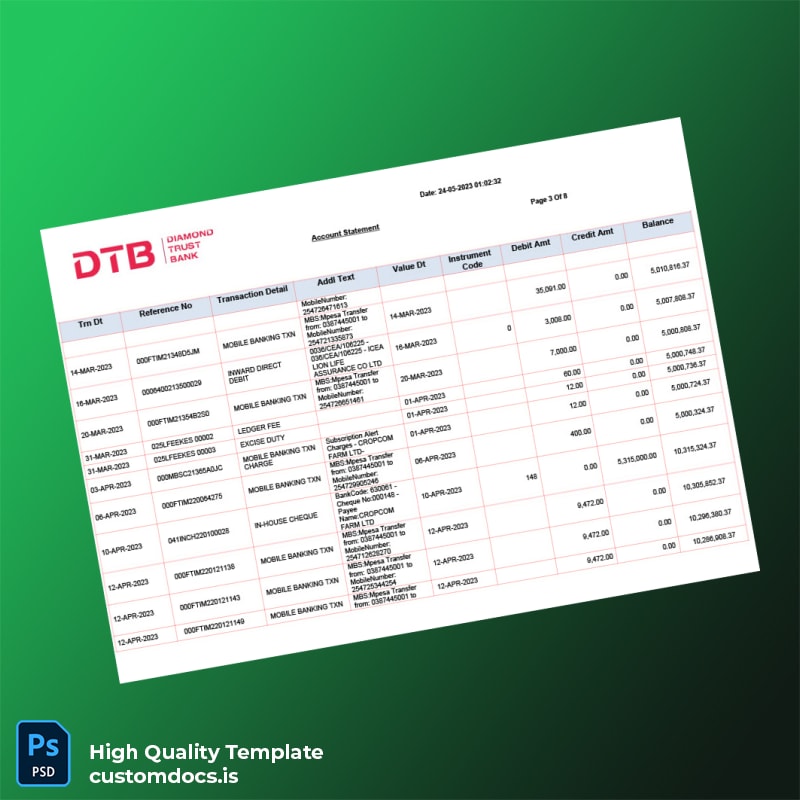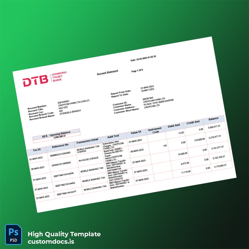 The Kenya DTB Bank Statement Template in Word and PDF formats is your go-to solution for quick, professional, and editable banking documents. Designed for busy professionals who require accuracy and immediate access to banking statements, this template offers a seamless way to modify essential details within minutes.