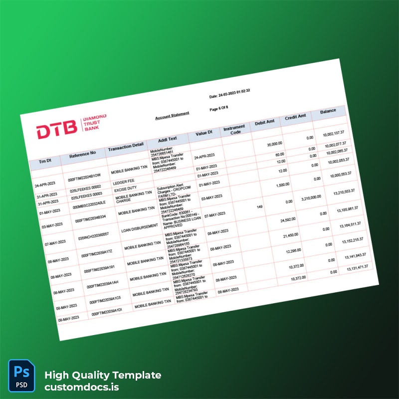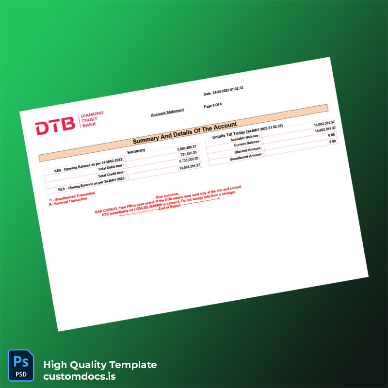 Our Kenya DTB Bank Statement Template comes packed with features that directly address your needs: