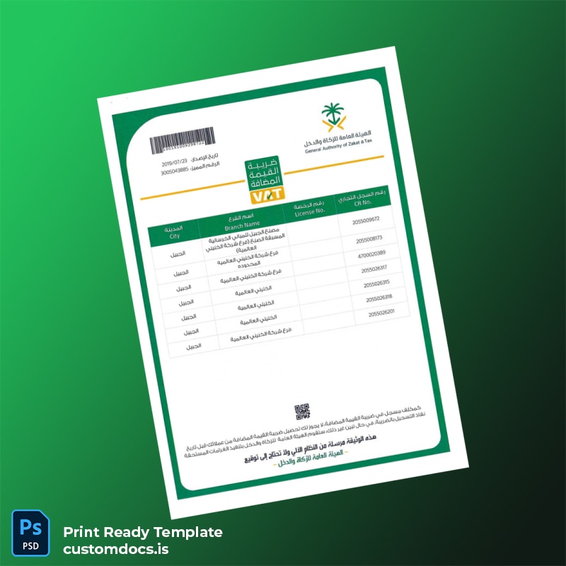 Get the KIC VAT Registration Certificate Template – Word & PDF for easy, professional VAT certificate editing and instant download. Perfect for quick business compliance.