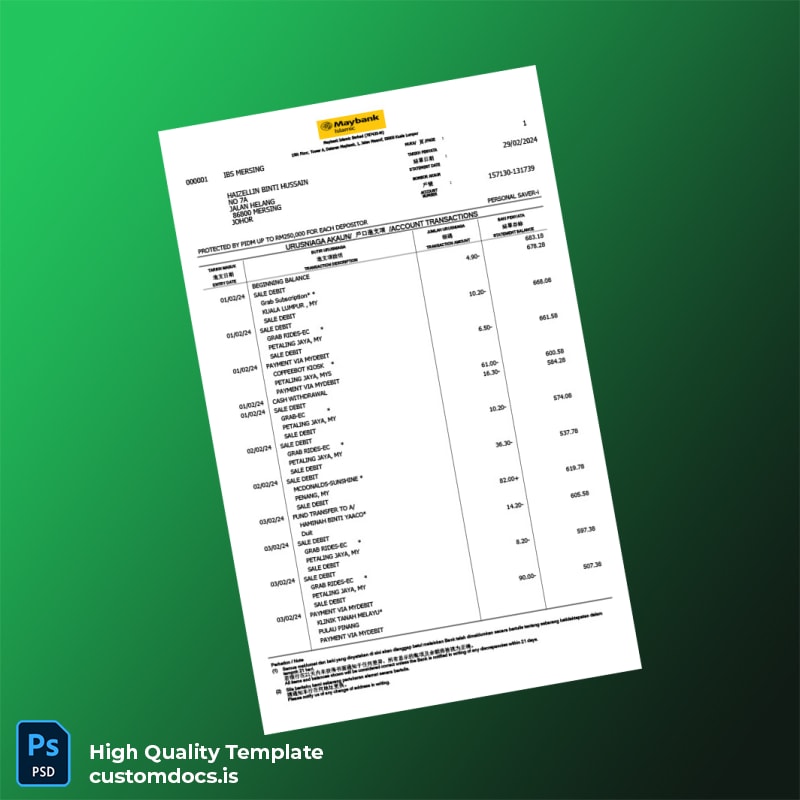 Malaysia Bank MBB Statement Template in Word and PDF Formats