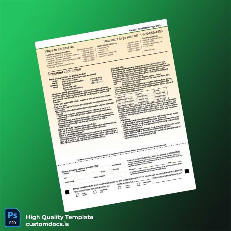 Don’t let missing or outdated bills stand in your way. Choose this utility bill template category solution to generate an electricity bill proof of address with confidence and ease. Download your N_A Editable Electricity Bill Template now and take control of your verification documents with a professional-grade, editable utility bill pdf file download designed to simplify your life.
