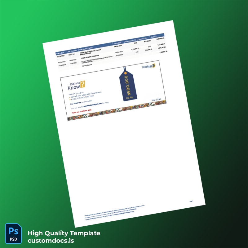 Nigeria FirstBank Statement Template – Simplified and Professional